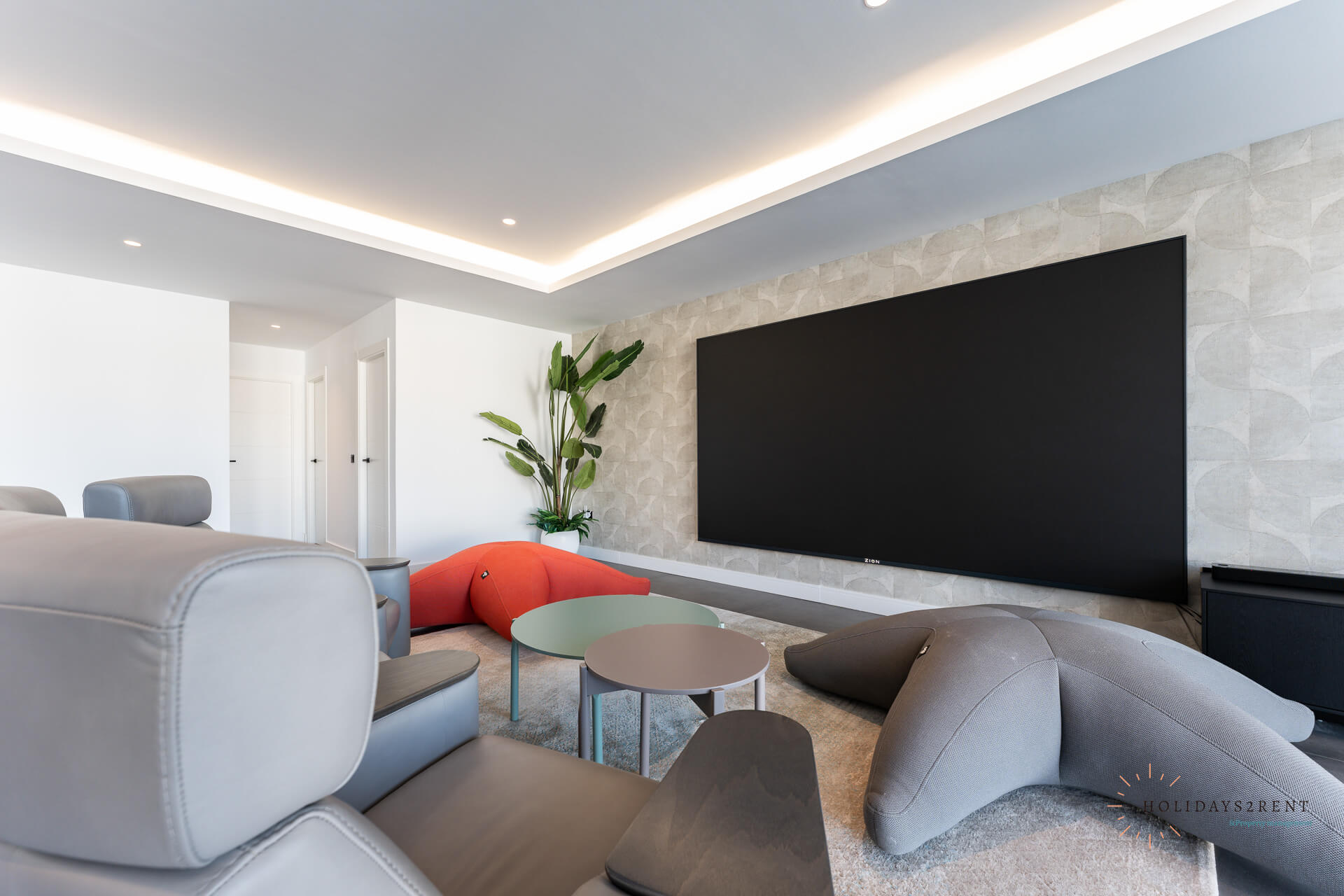 On the ground floor there is a modern cinema room and bar area where you can sit and enjoy a film at the end of your day. There is plenty of space to relax at the bar overlooking the infinity pool and the sublime view of the mountains.